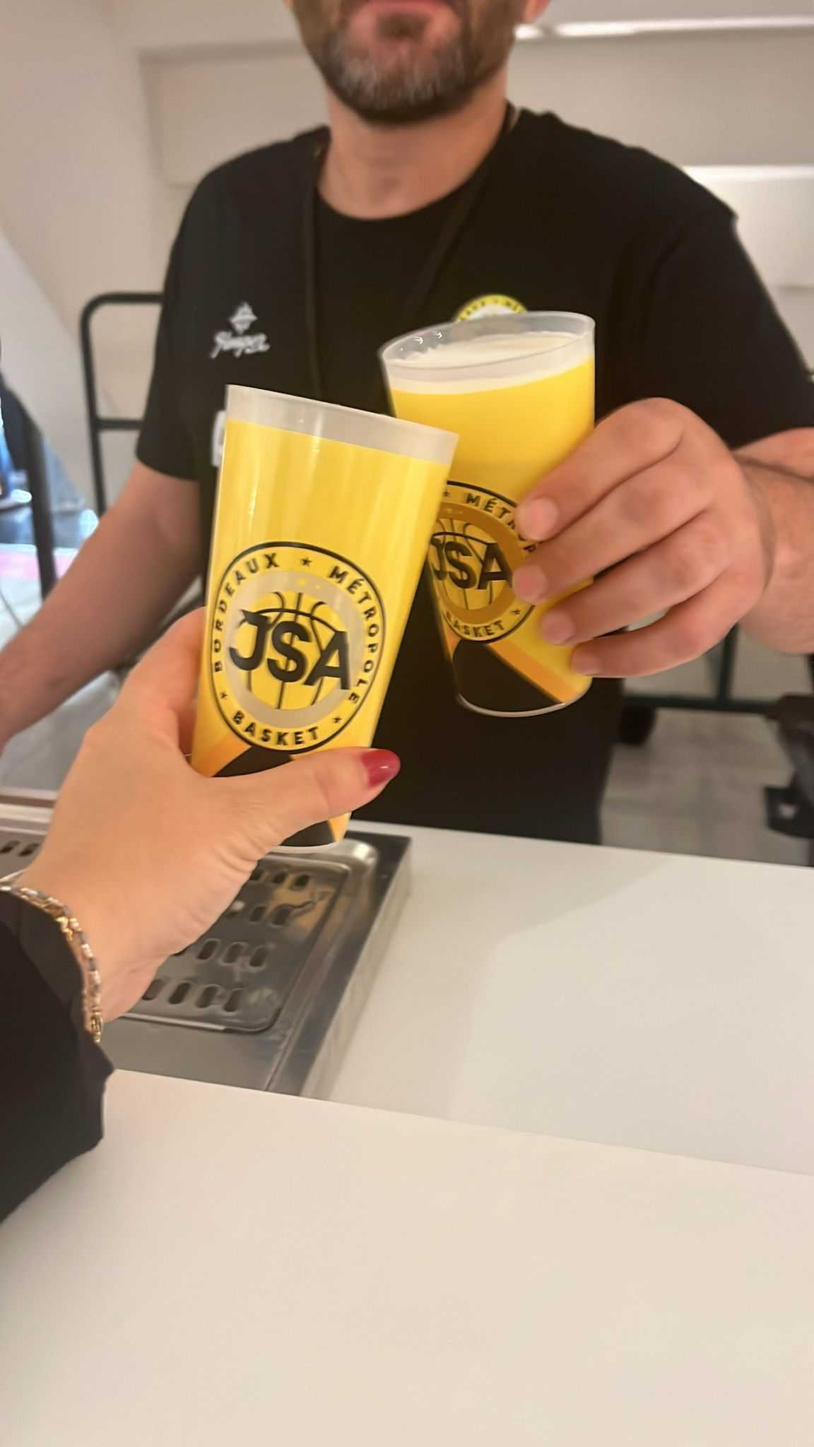 JSA Bordeaux Métropole Basket is a Bordeaux professional basketball team founded in the 40s. Close to 3000 visitors go support their black and yellow team. We worked on cups distributed at the bar and the boutique.